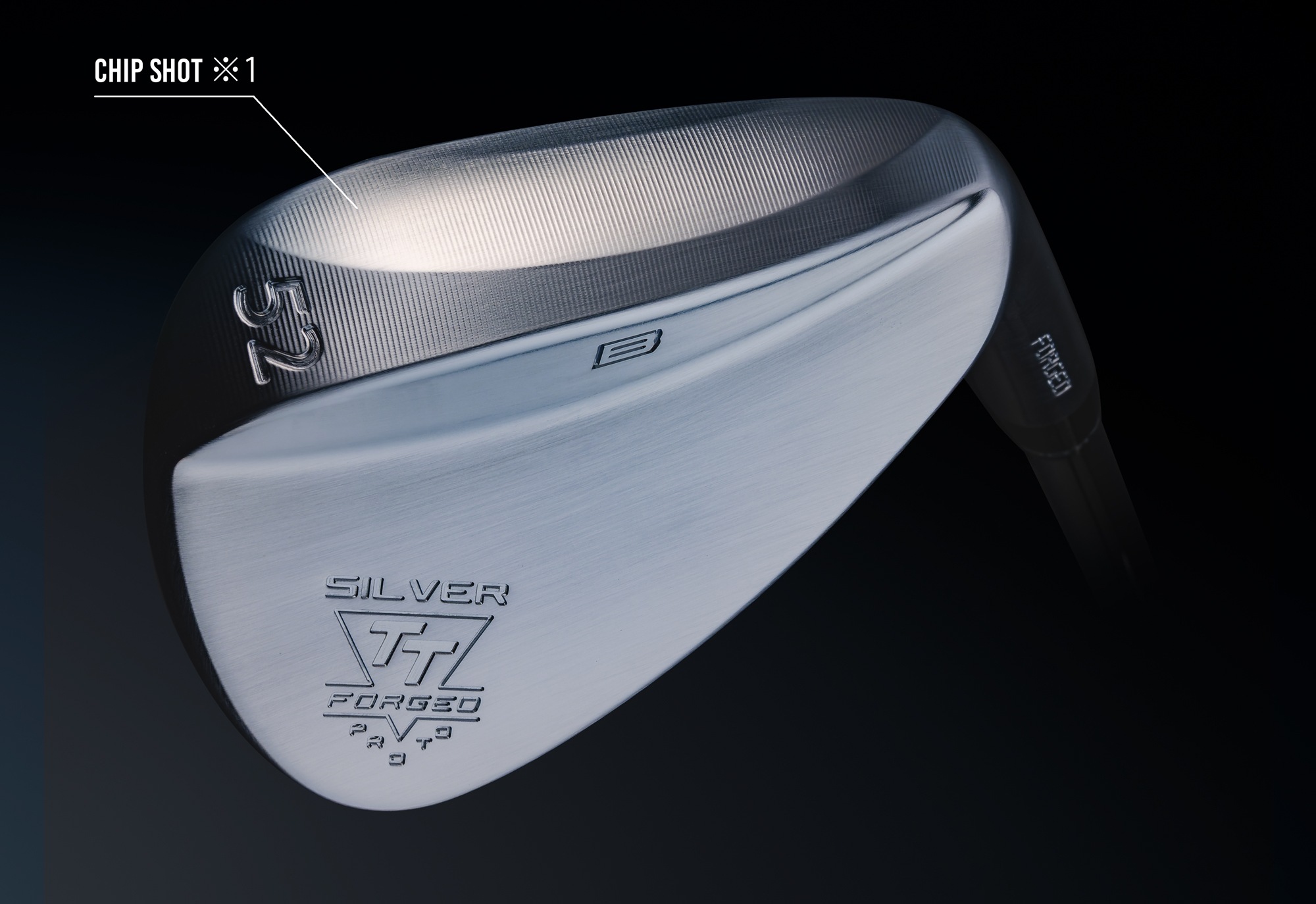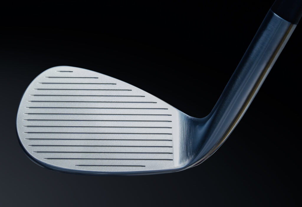 フェース全面にマシンカット加工で彫刻されたスコアラインを入れました。これによりアドレス時にフェースが大きく見えて安定感が増すこと、そしてヒールよりはもとより、トゥ側でヒットさせるアプローチなどの場合でもスピンを効かせた、より多彩なウェッジショットが可能です。